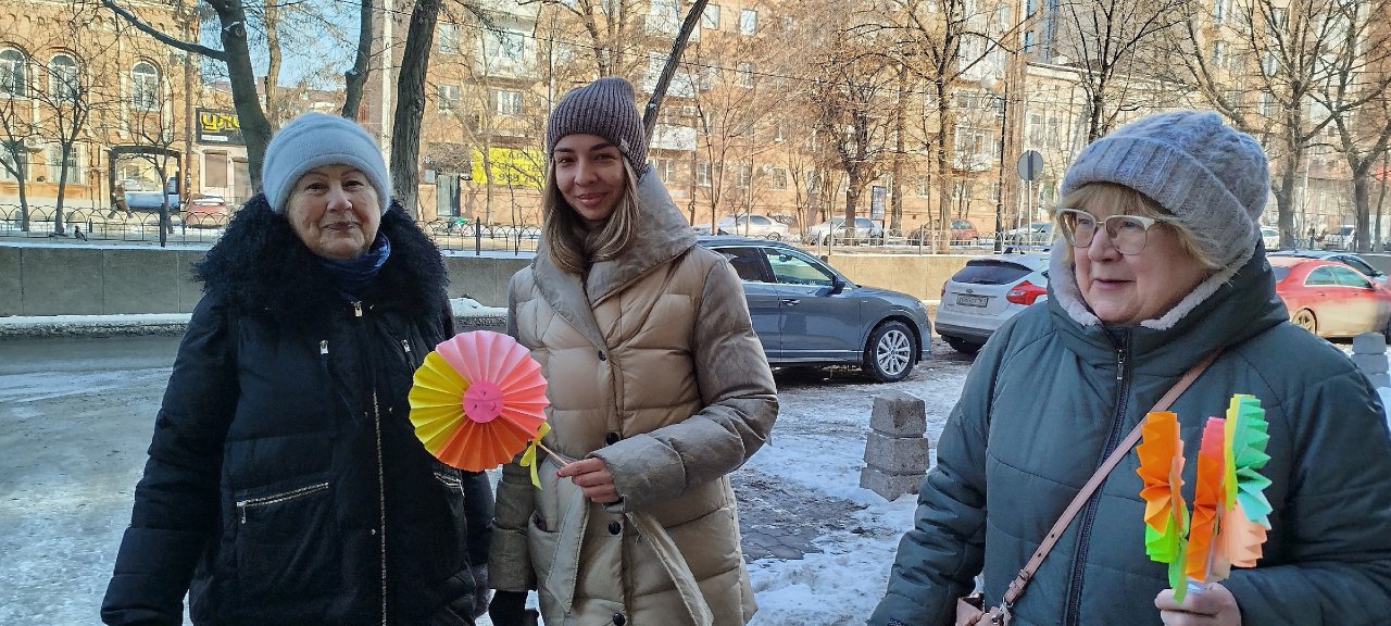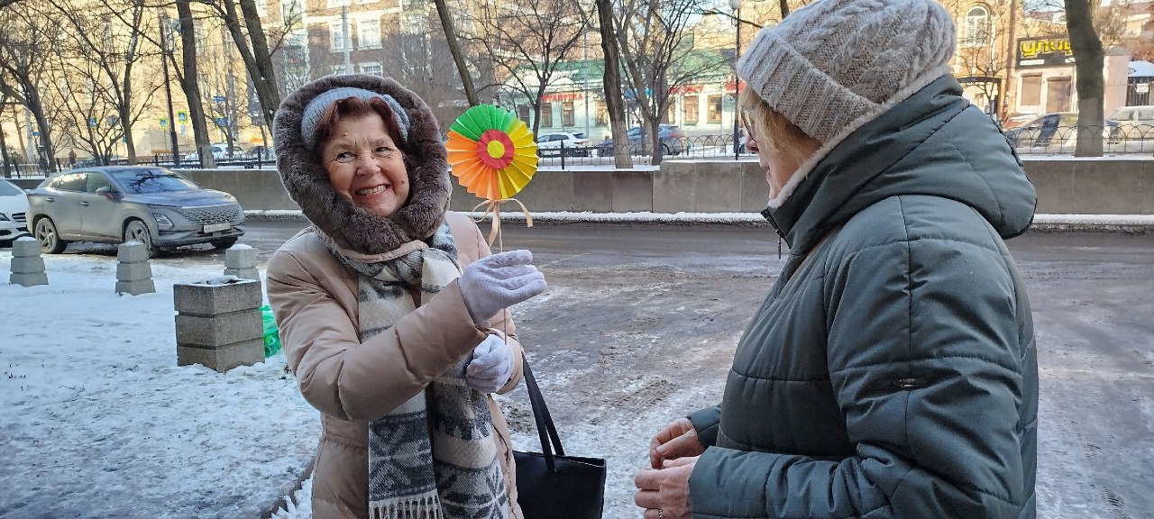 «Серебряные волонтеры» поздравляют жителей Ленинского района с Масленицей — Муниципальное бюджетное учреждение "Центр социального обслуживания населения Ленинского района города Ростова-на-Дону"