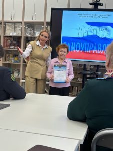💐В завершении мероприятия Елена Омельченко вручила нашим «серебряным волонтерам» Грамоты администрации района за активное участие в творческой жизни города🏙️ и организацию помощи бойцам – участникам СВО.