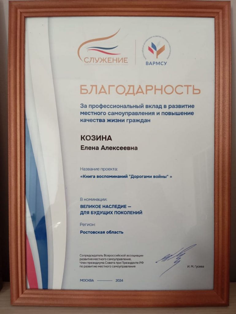 ❗За профессиональный вклад в развитие местного самоуправления и повышение качества жизни граждан, учреждение получило Благодарность от Всероссийской ассоциации развития местного самоуправления (ВАРМСУ).