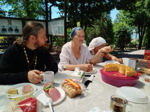 А потом небольшая экскурсия по строящемуся подворью храма, воскресной школе. Поздравления и слова благодарности были сказаны за праздничным столом. Мы приготовили подарки, сладости и домашний торт для детей и семьи отца Анатолия, а матушка накрыла стол и угостила нас вкусным чаем. Время быстро прошло за хорошей беседой и напутствиями батюшки.