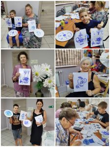 В дни школьных каникул в рамках социокультурного проекта «Бабушка на час» в нашей рукодельной мастерской каждую неделю проводятся мастер-классы по различным видам декоративно-прикладного искусства. Сегодняшнее занятие было посвящено русским народным промыслам. Нашими гостями были юные художники, дети с ОВЗ из Донского семейного многофункционального центра и их родители. Совместно с ними творчеством занимались наши получатели социальных услуг.