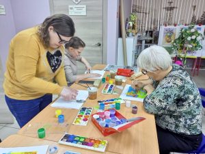 🎨🖌👵🏻Посмотрите с каким азартом и творческим настроением работают наши художницы, какие чудесные работы у них получились.