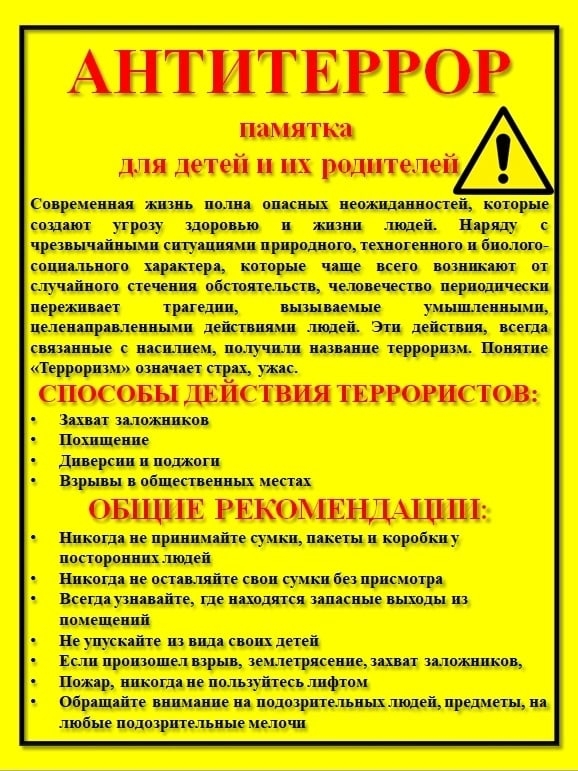 АНТИТЕРРОР! Памятка для детей и их родителей! — Муниципальное бюджетное учреждение "Центр социального обслуживания населения Ленинского района города Ростова-на-Дону"